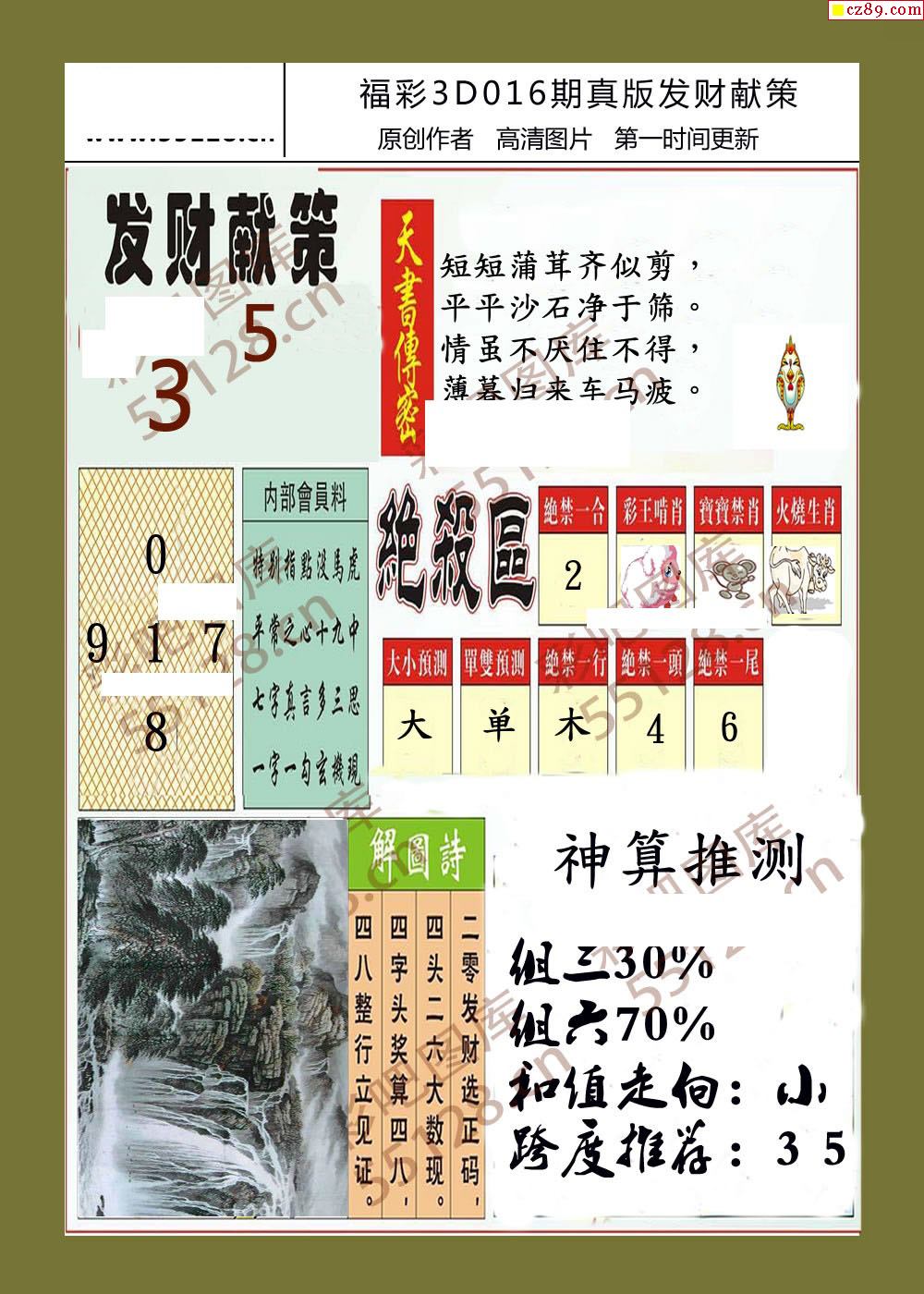 > 发财献策26年016期福彩3d字画报